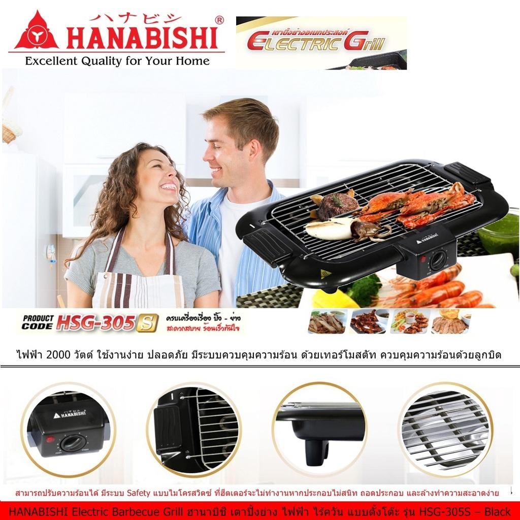 สินค้าลดราคา HANABISHI Electric Barbecue Grill ฮานาบิชิ เตาปิ้งย่าง ไฟฟ้า ไร้ควัน แบบตั้งโต๊ะ รุ่น HSG-305S ไฟฟ้า 2000 วัตต์ ใช้งานง่าย ปลอดภัย ควบคุมความร้อน ด้วยเทอร์โมสตัท ปรับความร้อนได้ มีระบบ Safety แบบไมโครสวิตซ์ (Code 1N-06)